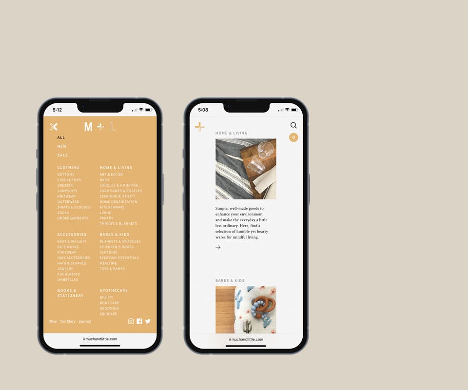 Much & Little is a boutique located in the vibrant community of Mount Pleasant, in Vancouver, BC. The shop offers timeless, well-made goods — hand-picked for their aesthetics, function, and the story behind them that creates lasting value. Our logo design is a play on the symbolic definition of “Much” and “Little". To accentuate abundance and ampleness, the word “Much” is represented by a solid font. In contrast, the word “Little” is depicted by a dainty outline.