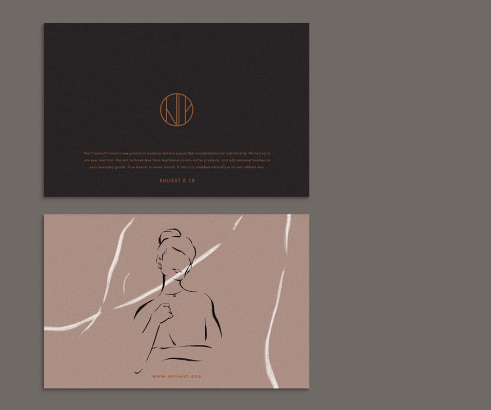 https://onliest.one/Onliest is a lifestyle and jewellery brand that focuses on custom pieces and unique designs. Based in both Vancouver and Hong Kong, they cater to an international market.Branding, Packaging, Illustration, Photography