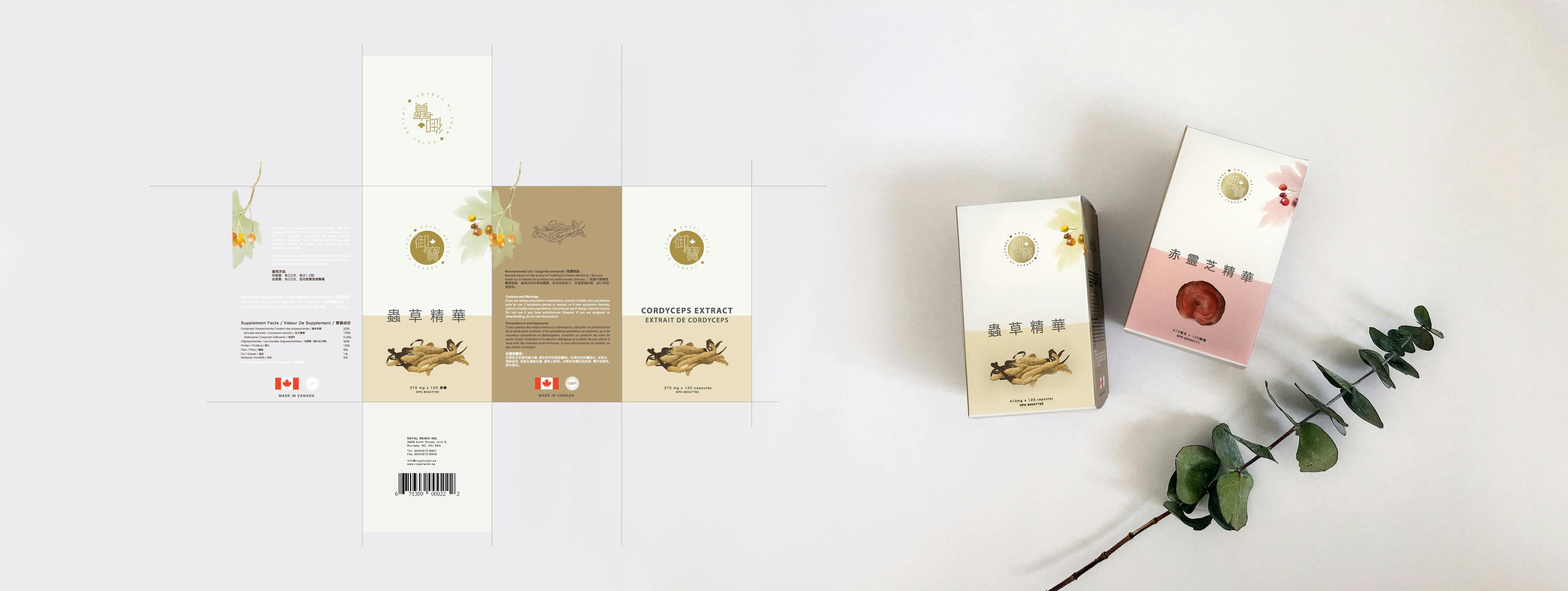 Royal Reishi is a natural health foods company located in Vancouver. They are committed to food and nutrition research, specialising in Reishi and Cordyceps plants. Their products are founded on the belief that prevention is better than the cure.Graphics, Identity, Illustration, Branding, Photography